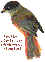 is definitely familiar if you have for example been trekking in Lapland. Its very curious to know what you are having for lunch in a break. This brown-red-greyish bird is also called the northern Finlands jay. Siberian jay is our smallest crow bird, during nesting time it is hiding but in the summer it is very curious and almost half tame, the lucky bird of the Sami people.